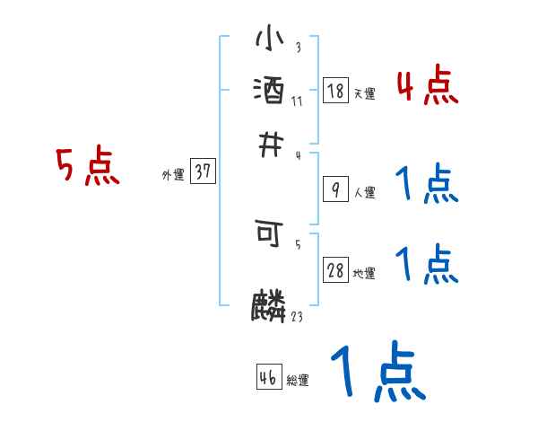 小酒井可麟さんの画数の鑑定結果