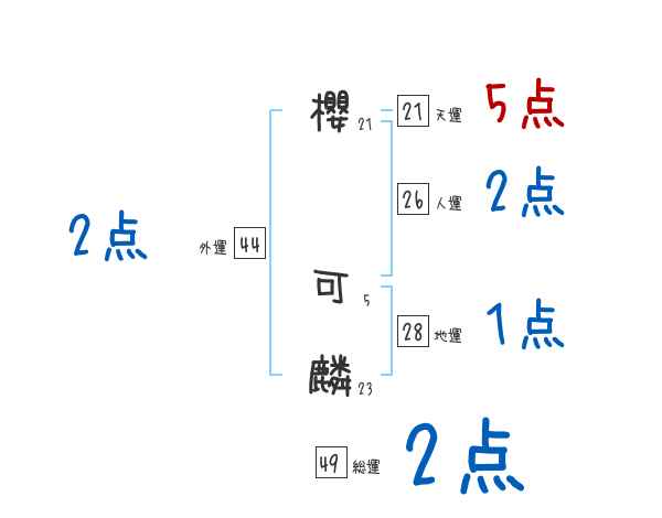 櫻可麟さんの画数の鑑定結果