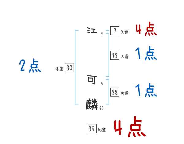 江可麟さんの総運は35画の4つ星