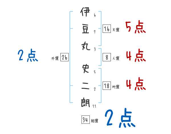 外運![]() | 伊豆丸史二朗さんの外運は26画の2つ星!波瀾万丈かも。信頼できる人を大事にしましょう。 生活面を象徴する運勢です。外部から受ける影響力を表し、結婚運、家庭運や職場、環境への順応性を表します。 |
