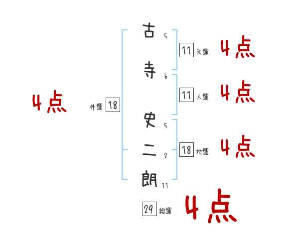 古寺史二朗さんの画数の鑑定結果