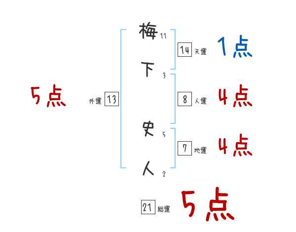 梅下史人さんの画数の鑑定結果