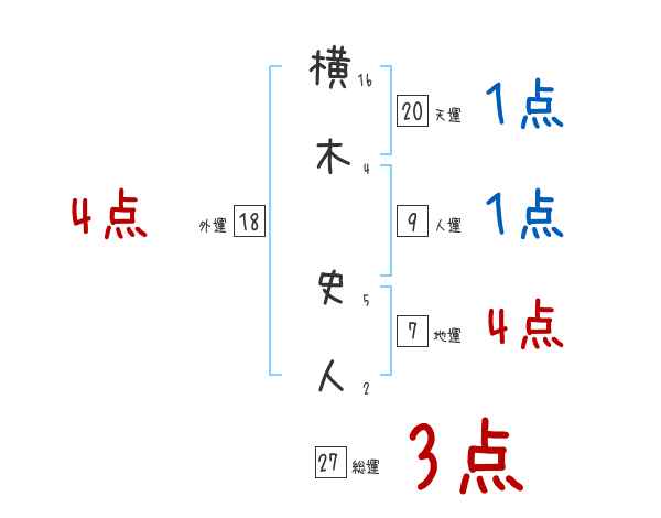 地運![]() | 横木史人さんの地運は7画の4つ星!強い意志や信念を持ち独立心が強い。自立する。 個性を表す基礎的な運勢です。性格形成や対人関係、行動力など家庭環境に影響されます。主に誕生してから20歳くらいまでの若年期の運勢を表します。 |