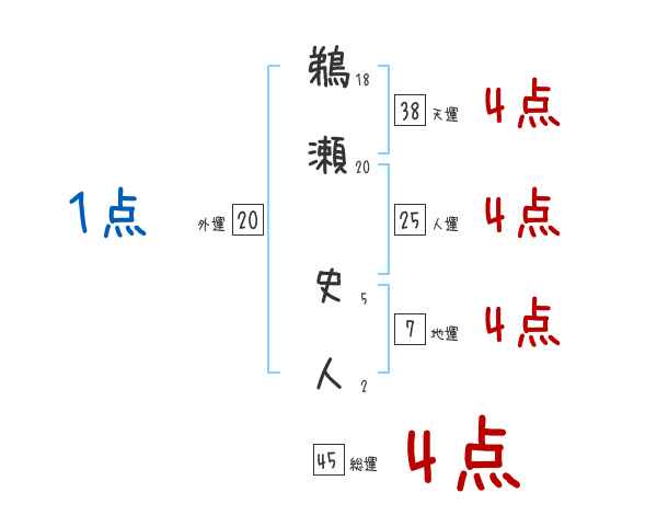 天運![]() | 鵜瀬史人さんの天運は38画の4つ星!温厚な性格で技術的な才能を発揮する。職人的な仕事に向いている。 家系が持つ宿命的な運勢を表します。祖先から受け継いだ苗字ですので自分の力が及びません。家柄を象徴します。 |