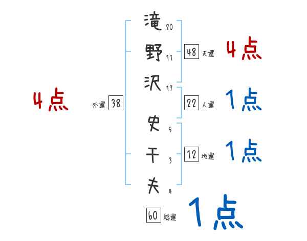 滝野沢史千夫さんの画数の鑑定結果