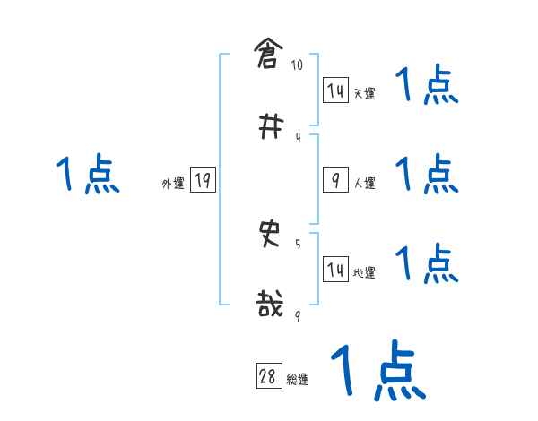 総運![]() | 倉井史哉さんの総運は28画の1つ星!家庭環境に注意。スポーツで活躍できる能力があるかも。 あなたの人生を表す1番重要な運勢です。生涯を通じて影響する総合運となり、主に50歳以降の晩年期に影響を及ぼします。 |