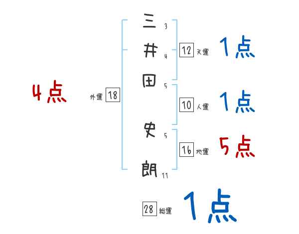 外運![]() | 三井田史朗さんの外運は18画の4つ星!情熱的で剛気。忍耐力があり信頼される。 生活面を象徴する運勢です。外部から受ける影響力を表し、結婚運、家庭運や職場、環境への順応性を表します。 |