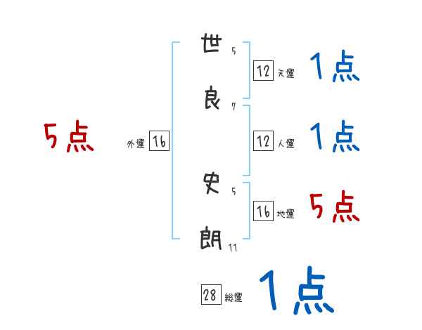 外運![]() | 世良史朗さんの外運は16画の5つ星!人望が厚く大きく発展する。逆転成功が見える。 生活面を象徴する運勢です。外部から受ける影響力を表し、結婚運、家庭運や職場、環境への順応性を表します。 |