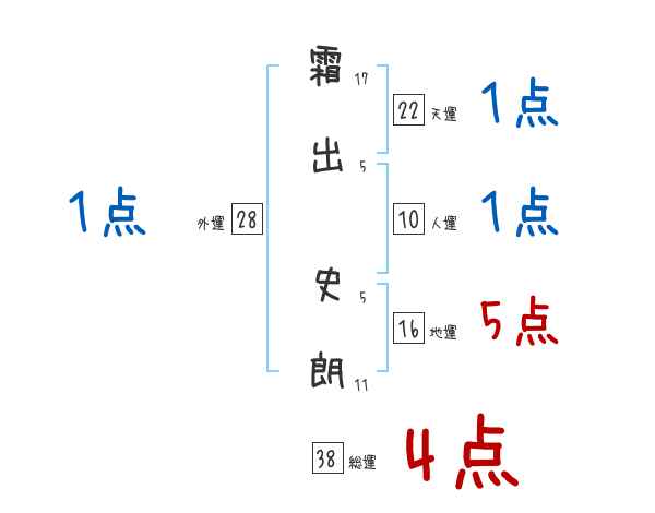 霜出史朗さんの画数の鑑定結果