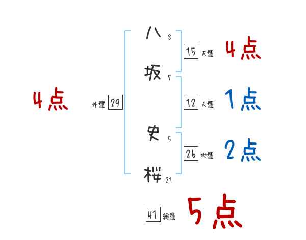 八坂史桜さんの画数の鑑定結果
