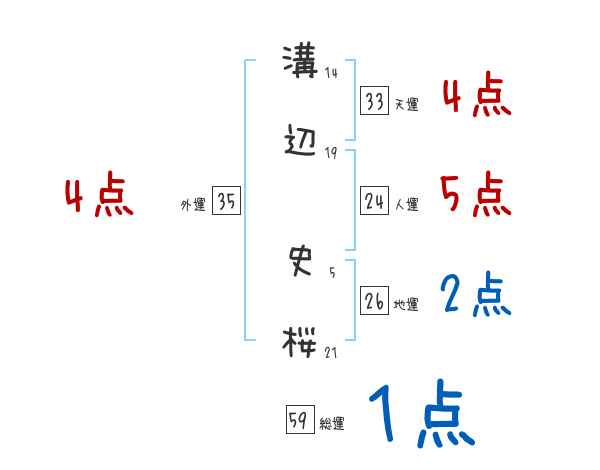 溝辺史桜さんの画数の鑑定結果