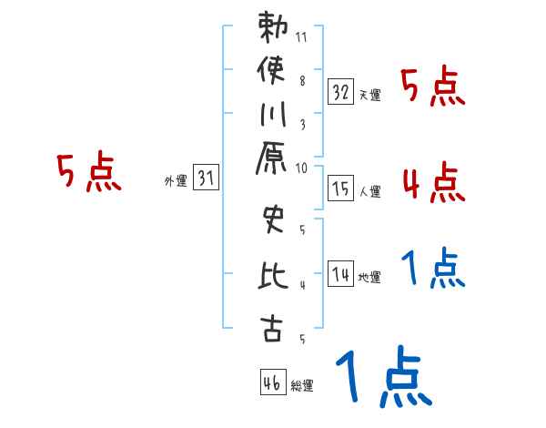勅使川原史比古さんの画数の鑑定結果