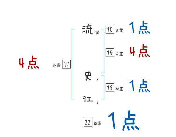天運![]() | 流史江さんの天運は10画の1つ星!不安を感じやすい傾向。ストレスを抱えないように注意しましょう。 家系が持つ宿命的な運勢を表します。祖先から受け継いだ苗字ですので自分の力が及びません。家柄を象徴します。 |
