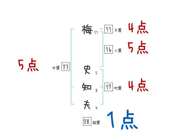 梅史知夫さんの画数の鑑定結果