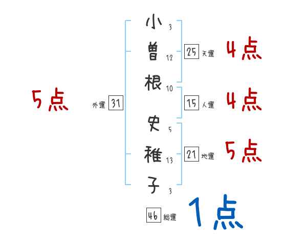 小曽根史稚子さんの画数の鑑定結果