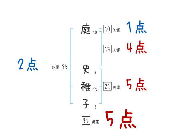 庭史稚子さんの画数の鑑定結果