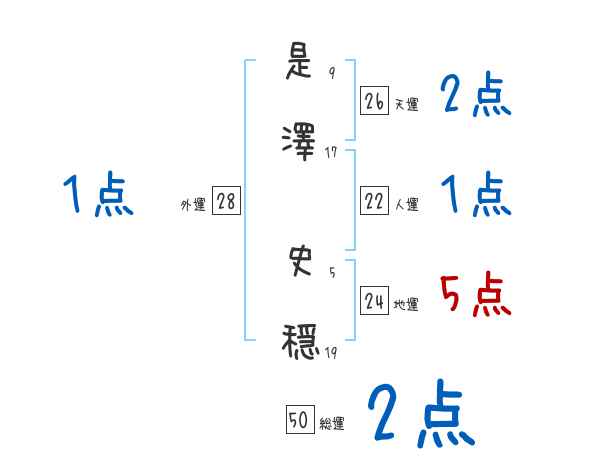 是澤史穏さんの画数の鑑定結果