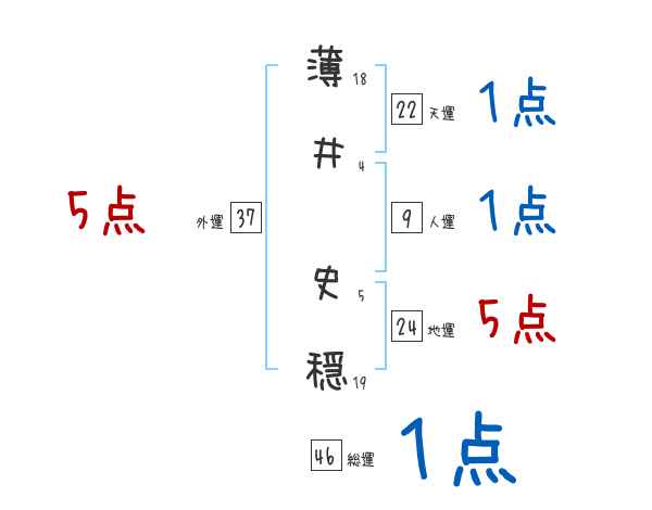 外運![]() | 薄井史穏さんの外運は37画の5つ星!努力家で順応性に優れる。現実的な考え方ができ忠実に物事をこなす。 生活面を象徴する運勢です。外部から受ける影響力を表し、結婚運、家庭運や職場、環境への順応性を表します。 |