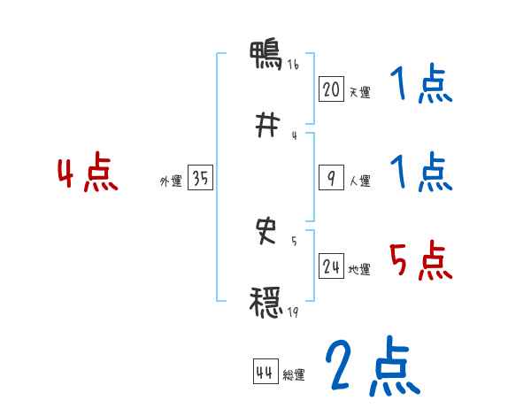 鴨井史穏さんの画数の鑑定結果