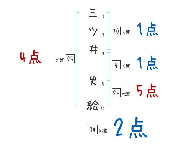 総運![]() | 三ツ井史絵さんの総運は34画の2つ星!独創性に優れるが、自尊心が強く災難に注意しましょう。 あなたの人生を表す1番重要な運勢です。生涯を通じて影響する総合運となり、主に50歳以降の晩年期に影響を及ぼします。 |
