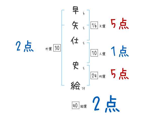 外運![]() | 早矢仕史絵さんの外運は30画の2つ星!浮き沈みの激しさに注意しましょう。 生活面を象徴する運勢です。外部から受ける影響力を表し、結婚運、家庭運や職場、環境への順応性を表します。 |