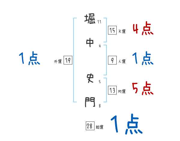 堀中史門さんの画数の鑑定結果