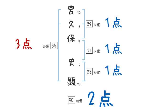 外運![]() | 宮久保史顕さんの外運は36画の3つ星!先見性が豊かです。多少神経質で苦労することも。 生活面を象徴する運勢です。外部から受ける影響力を表し、結婚運、家庭運や職場、環境への順応性を表します。 |