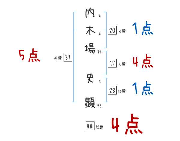 人運![]() | 内木場史顕さんの人運は17画の4つ星!積極的な行動力。地位を気づき財産を手に入れる。純粋な心と直感力。 性格や才能などを表す2番目に重要な運勢です。人間関係や協調性、社会的な成功に影響します。主に20歳から50歳ぐらいまでの中年期の運勢を表します。 |