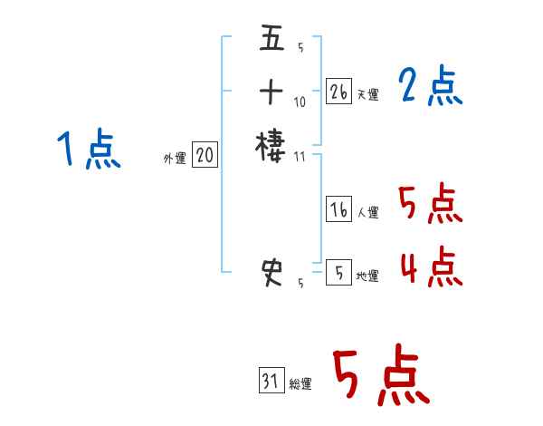 五十棲史さんの画数の鑑定結果
