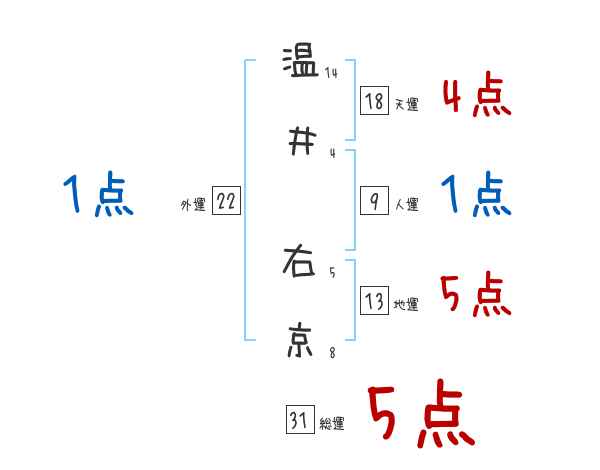 温井右京さんの画数の鑑定結果