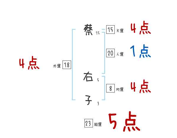 蔡右子さんの画数の鑑定結果