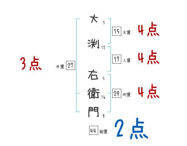 天運![]() | 大渕右衛門さんの天運は15画の4つ星!人徳があり出世する。順調に物事を進め円満な人生。 家系が持つ宿命的な運勢を表します。祖先から受け継いだ苗字ですので自分の力が及びません。家柄を象徴します。 |