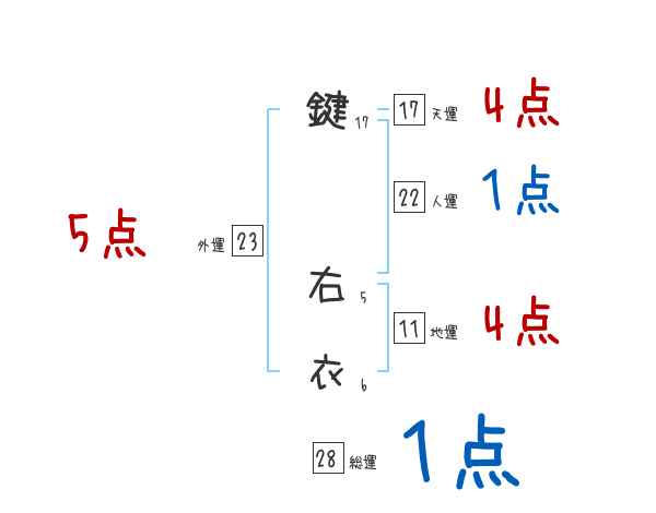 鍵右衣さんの画数の鑑定結果