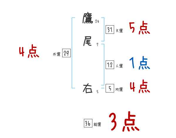 鷹尾右さんの画数の鑑定結果