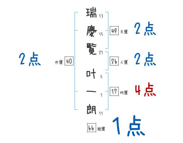 瑞慶覧叶一朗さんの画数の鑑定結果