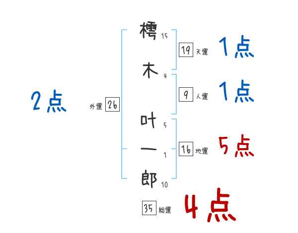 樗木叶一郎さんの画数の鑑定結果