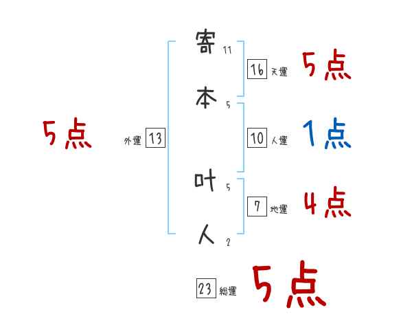 寄本叶人さんの画数の鑑定結果
