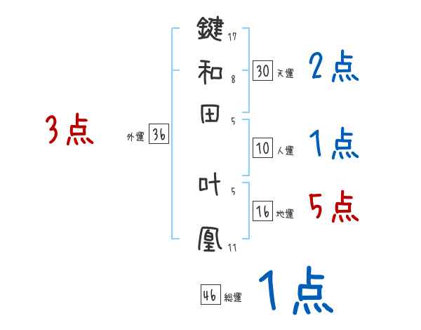 鍵和田叶凰さんの画数の鑑定結果