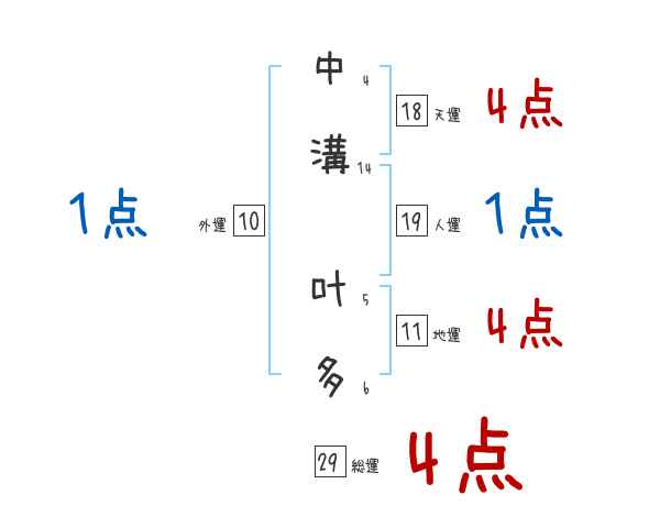 中溝叶多さんの画数の鑑定結果