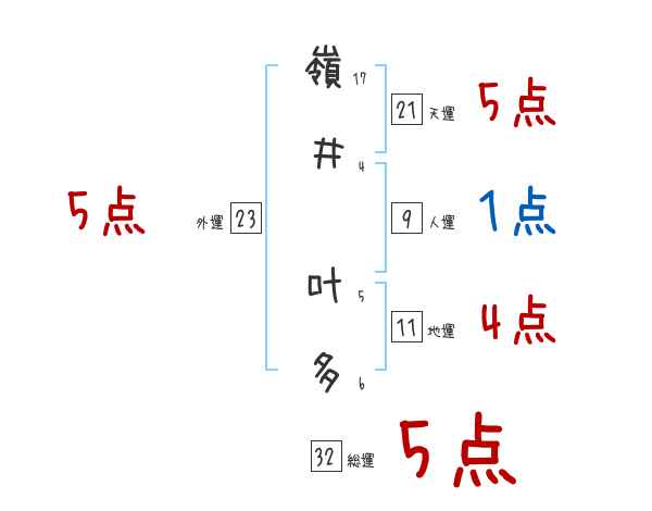 総運![]() | 嶺井叶多さんの総運は32画の5つ星!柔軟性があり成功する。チャンスが多く金運が良い。 あなたの人生を表す1番重要な運勢です。生涯を通じて影響する総合運となり、主に50歳以降の晩年期に影響を及ぼします。 |