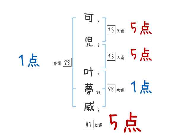 可児叶夢威さんの画数の鑑定結果