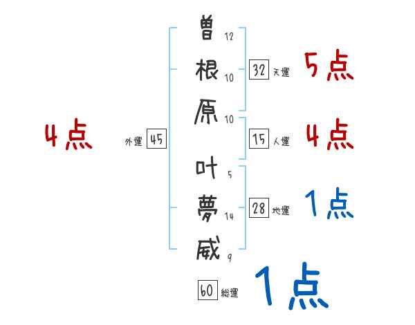 家系が持つ宿命的な運勢を表します。祖先から受け継いだ苗字ですので自分の力が及びません。家柄を象徴します。