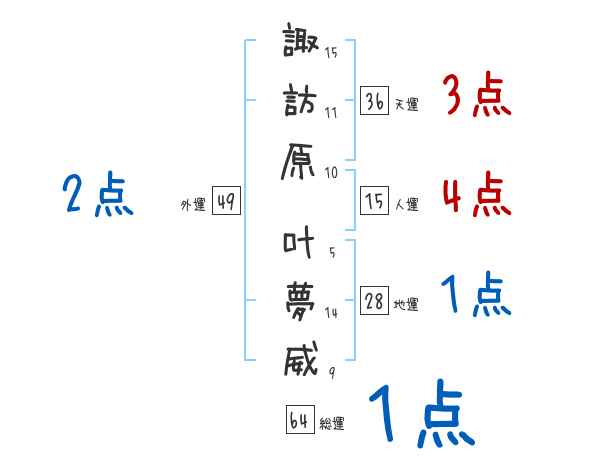 諏訪原叶夢威さんの画数の鑑定結果