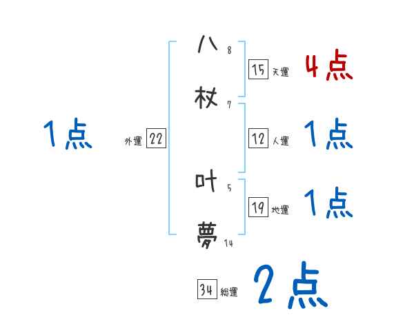 総運![]() | 八杖叶夢さんの総運は34画の2つ星!独創性に優れるが、自尊心が強く災難に注意しましょう。 あなたの人生を表す1番重要な運勢です。生涯を通じて影響する総合運となり、主に50歳以降の晩年期に影響を及ぼします。 |