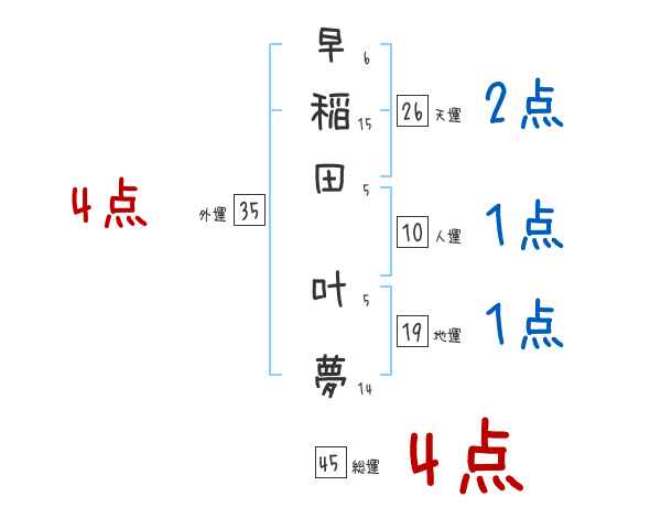 早稲田叶夢さんの画数の鑑定結果