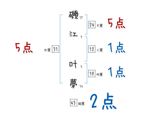 磯江叶夢さんの画数の鑑定結果