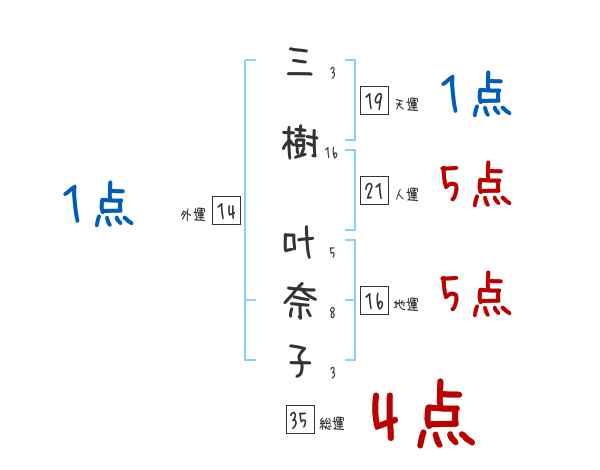 外運![]() | 三樹叶奈子さんの外運は14画の1つ星!人に対して優しいがストレスを溜め込みがち。人間関係のトラブルを避けるよう気をつけましょう。 生活面を象徴する運勢です。外部から受ける影響力を表し、結婚運、家庭運や職場、環境への順応性を表します。 |