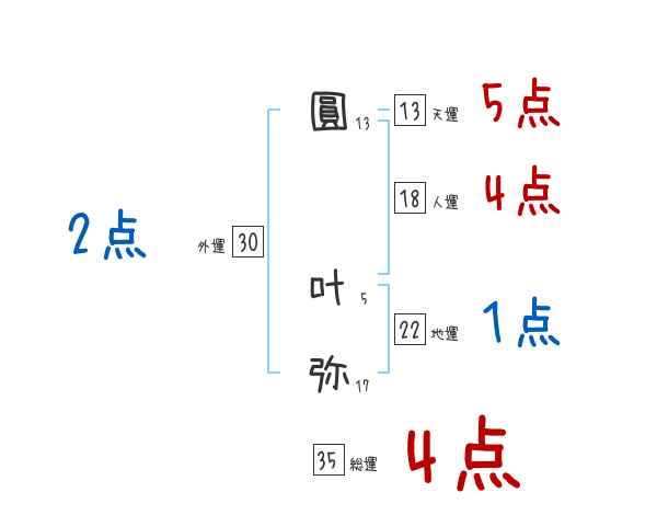 天運![]() | 圓叶弥さんの天運は13画の5つ星!才能に恵まれ人気がある。名声を手に入れる。円満な人生。 家系が持つ宿命的な運勢を表します。祖先から受け継いだ苗字ですので自分の力が及びません。家柄を象徴します。 |