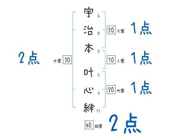 宇治本叶心絆さんの画数の鑑定結果