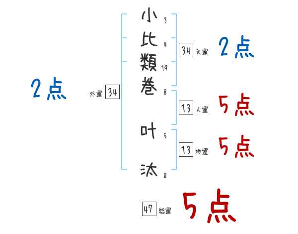 小比類巻叶汰さんの画数の鑑定結果